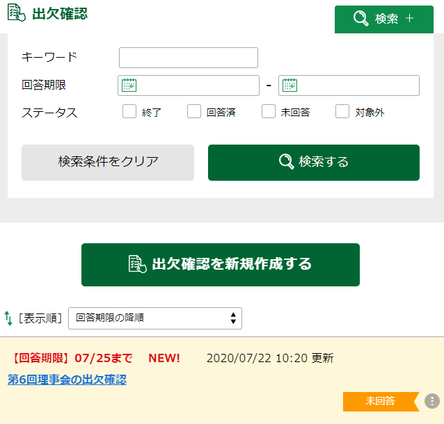 「回答期限」や「ステータス」などによる、情報の検索も可能です。