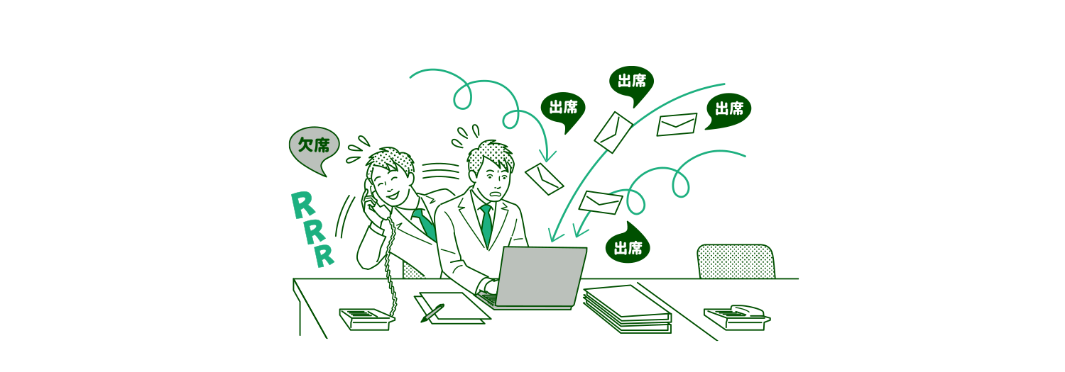 出欠確認フォームをカンタンに作成でき、メンバーの回答情報がひと目でわかる「出欠確認」機能の一部をご紹介します。
