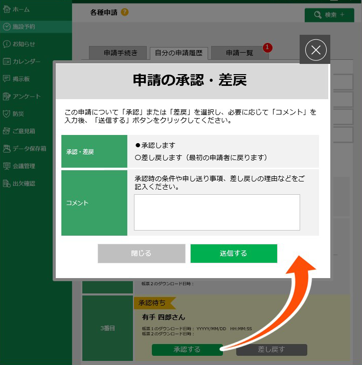 管理者様は申請内容を確認して承認