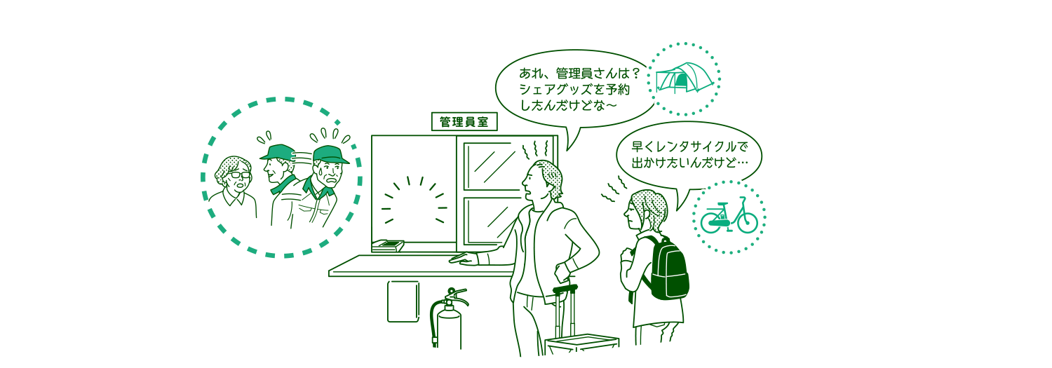 居住者は、管理員室にシェアグッズや鍵を貰いに行く必要がありません。