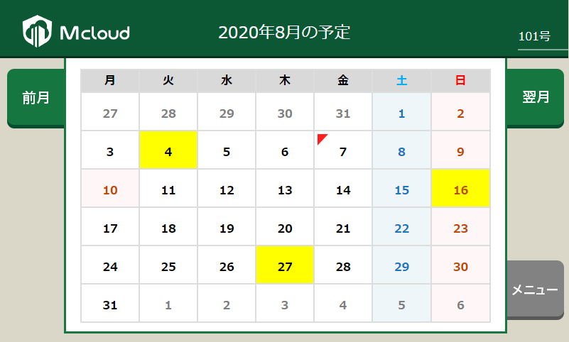 理事会、イベント、サークル活動日、定期点検日など、マンション内の予定をMcloudのカレンダー機能を使って共有することができます。