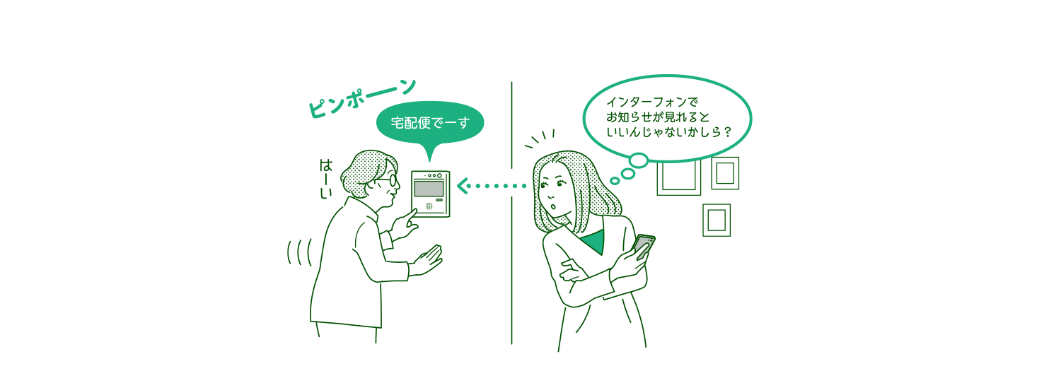 - インターホンを通して、マンションのすべての居住者に情報を共有することが可能です。
